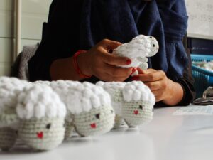 Each lamb is handmade by a woman who is a survivor of exploitation.